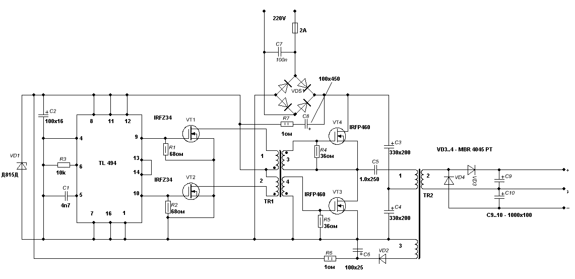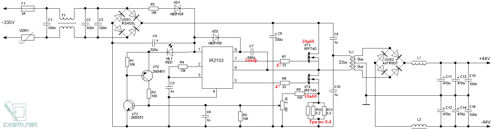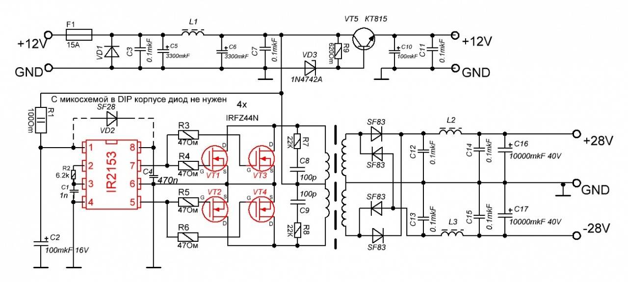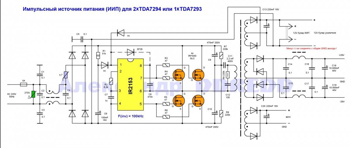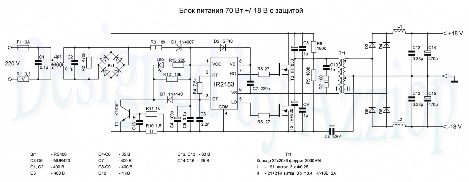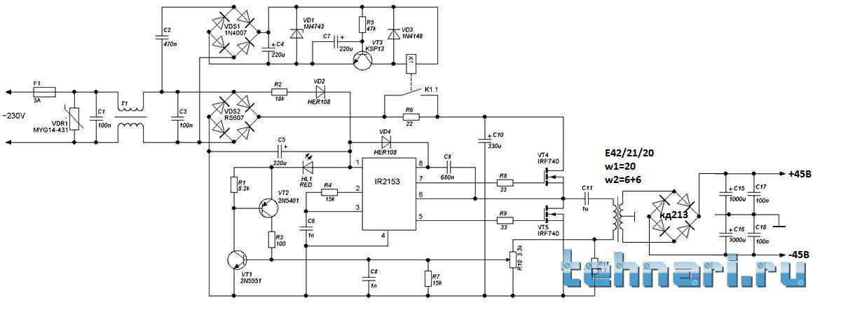 IR2153 (300-500W) üzerinde UMZCH için anahtarlama güç kaynağı.html