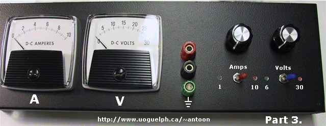 electrolytic C6 = 4.7 µF, 25V, tantalum, or high-quality electrolytic C7 = 470pF, ceramic C8 = 10 µF, 63V, electrolytic C9 = 1 µF, foil type. see text C10 = 22 nF, ceramic Semiconductors D1 = 1N4004, 1N4005, 1N4007, BY127, etc. D2 = 1N4148, BAX13, BAX16, etc. D3 = 1N4389 power diode, 20A+ (see text) D5,D6,D7,D8 = Leds, any type (see text) ZD1 = 1N4754A, Zenerdiode, 1 watt, 39V ZD2 = 1N4636A, Zener, 250mW, 6.2 or 6.8V Q1 = TIP140, MJ2501, BD267A, 2N6388, etc. Q2,Q3,Q4,Q5 = Transistor, 2N3772/NTE181 L1,L2 = Ferrite Bead (click here for more info) IC1 = MC723, µA723, LM723 BR1 = Bridge Rectifier (see text) Miscellaneous M1 - Panelmeter, see text M2 - Panelmeter, see text T1 - Transformer, Hammond 165S25 (25V/10A), or similar ![]() F1 = Fuse, 3.15A, slow-blow S1 = Toggle switch, ON-OFF, DPDT, sub-mini S2a-b = Toggle switch, ON-OFF-ON, DPDT S3a-b = Toggle switch, ON-OFF-ON, DPDT S4 = For use with one panelmeter: ON-OFF-ON, DPDT Fuseholder, very large coolrib for the 4 power transistors, Q1, and D3 (isolated), wire, solder, 2 knobs, instrument case, power cord, etc. The meter scales are re-scaled with rub-on lettering. |