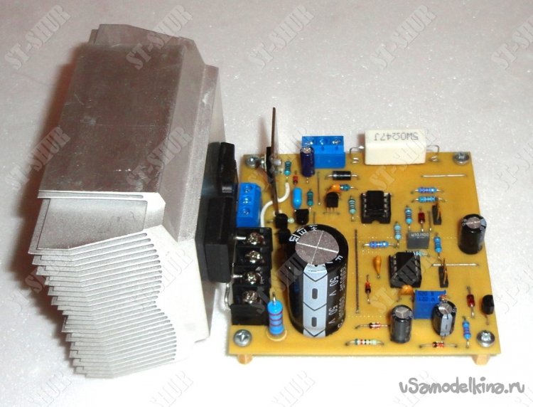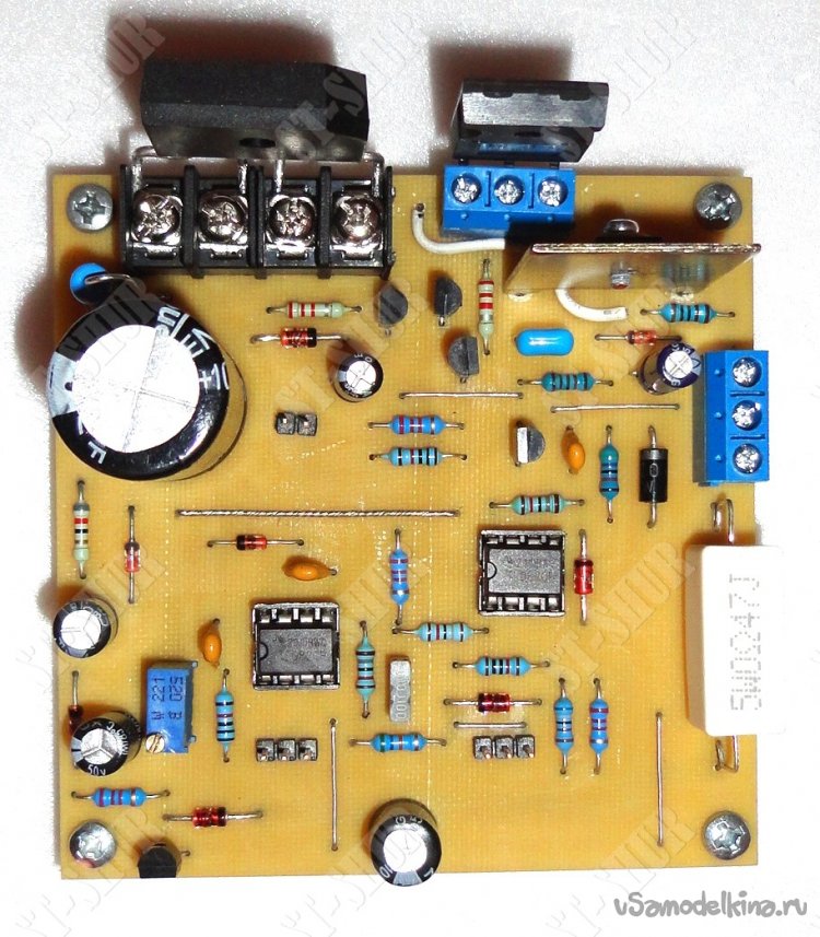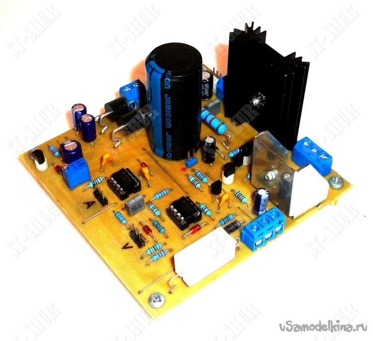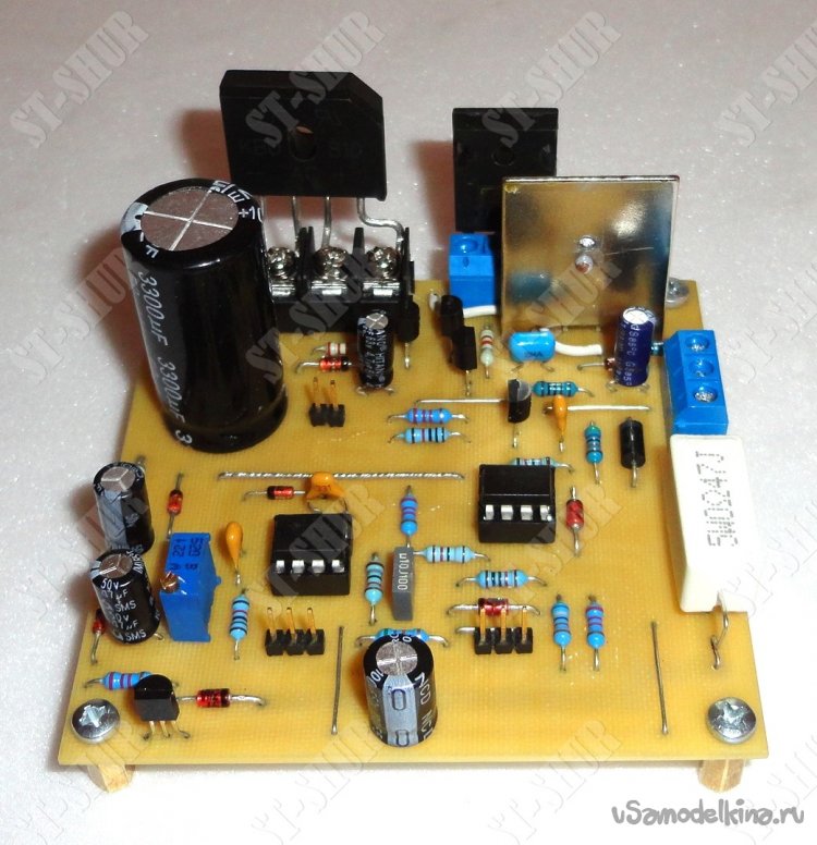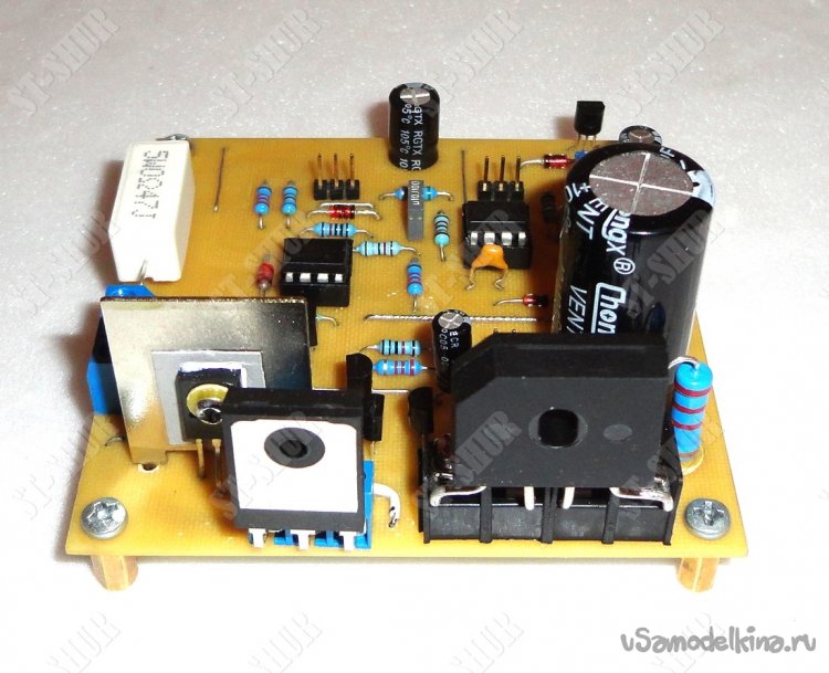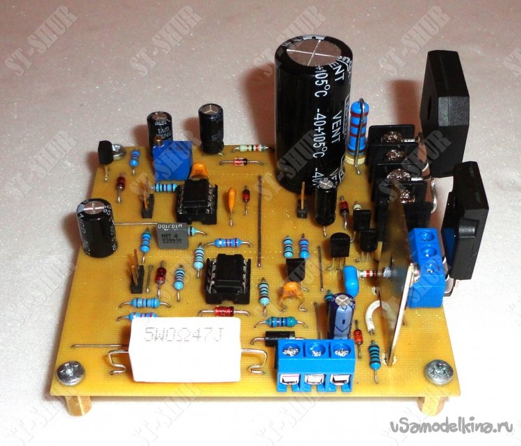 Doğrultucu diyotlar, çıkış transistörü ile aynı düzlemde bulunabilen bir KBU810 köprüsü (8A'da) ile değiştirilir. Bu, ortak bir radyatöre monte edildiklerinde oldukça uygundur. Bu versiyonda, kartta 12V sabitleyici sağlanmamıştır. Açık tip bir terminal bloğu "KEFENG KF-7.62" kullanımı nedeniyle, ortak bir radyatöre (gerekirse) sorunsuz bir şekilde monte edilmesine rağmen.