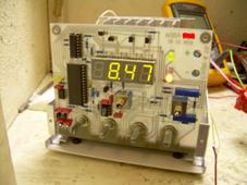 Devre 0-40V , çıkış voltajı edebilmek için 0-10A akımını kontrol tarafından. (Yaptığım cihazancak gösterge panelinin ve transformatörün geometrik boyutları nedeniyle sadece 7A ile 'yüklenebilir'.) Dahili panel metresi, çıkış voltajını ve akımı dört basamaklı olarak gösterir (maks.: 9999). Devre dört bölümden oluşmaktadır; yardımcı güç kaynağı, ön regülatör, ana regülatör ve panel metre. Ön regülatör Scori'dendir, ana regülatör Urban yüzer toprak güç kaynağının cilalı bir çeşididir ve panel metre, bazı ekstralarla birlikte ICL7135 için fabrika varsayılan devresidir. Kontakların erimesini önlemek için güç kaynağına elektronik DC ON / OFF anahtarı verilmiştir. Devrenin çıkışı dört telli olduğundan ölçüm ve kontrol cihaz gövdesinin çıkış terminallerine göre yapılır.