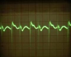 A következő szkóp-ábrák 4db izzóból álló terhelés mellett készültek (párhuzamosan 2-2 sorba kötve):