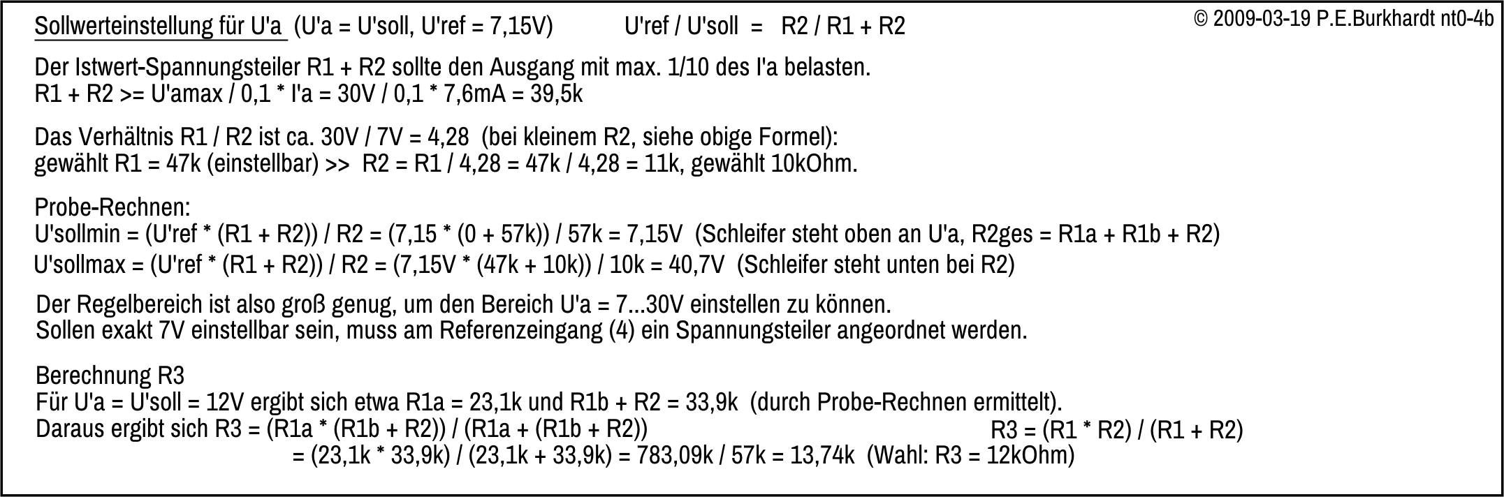 Aufgrund der 7,15V-Referenz ergeben sich prinzipiell 2 Schaltungsvarianten, je nachdem wie hoch die geregelte Ausgangsspannung sein soll.