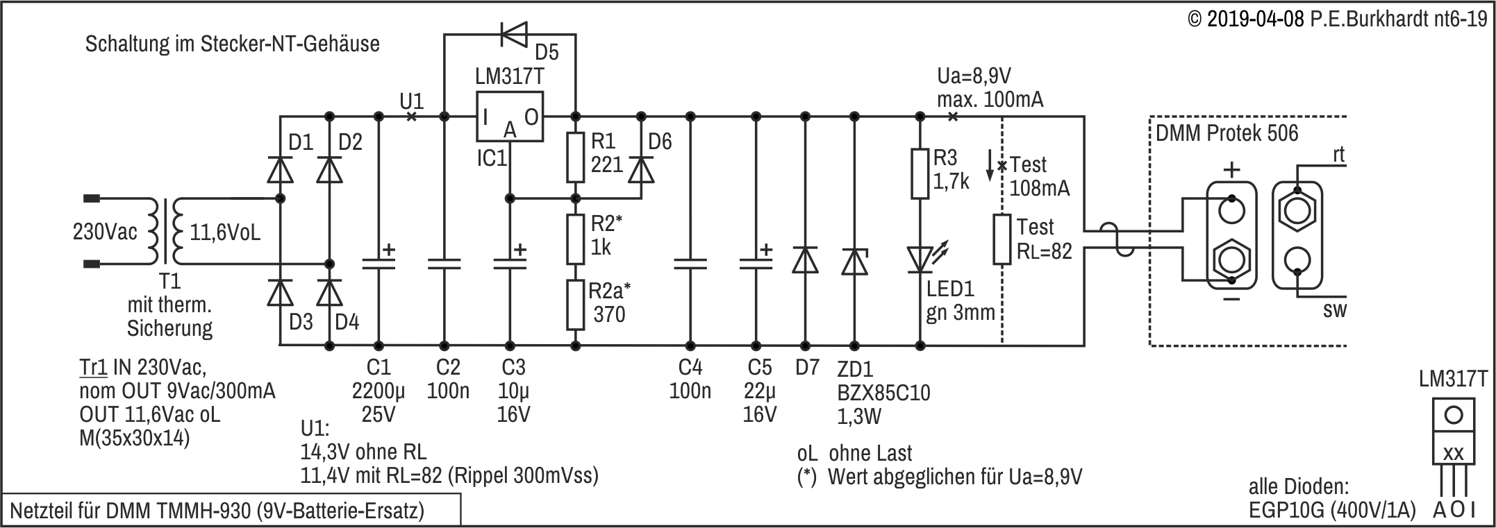 Um Uz messen zu können, wurde R5 eingefügt. Uz sollte zwischen 6,0 und 6,4 V liegen.
