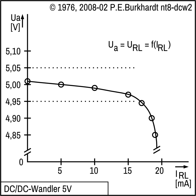 Tabelle 2 zeigt die Grenzen der Schaltung. Der differentielle Ausgangswiderstand steigt ab Ua = 7 V stark an. Sinnvoll sind nur Ausgangsspannungen bis ca. 6 V.