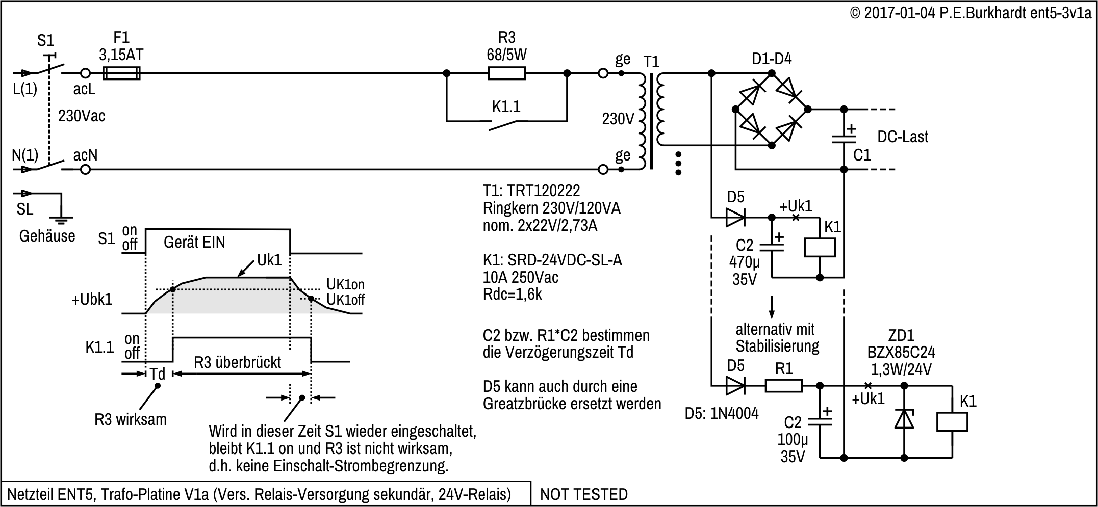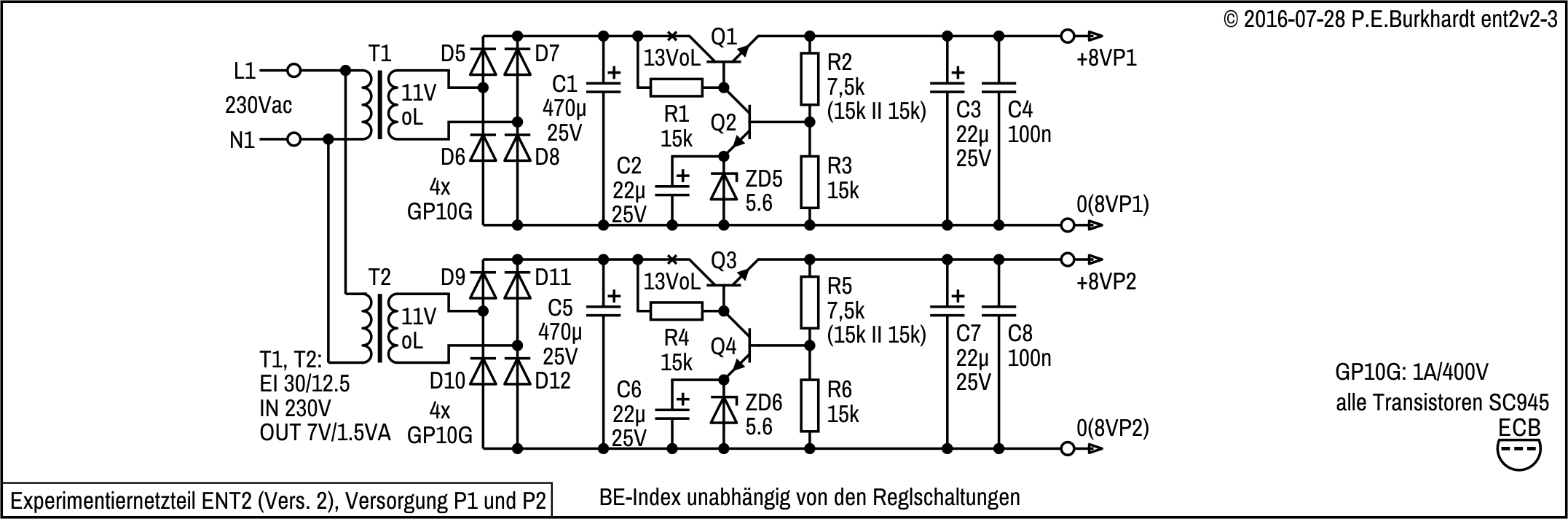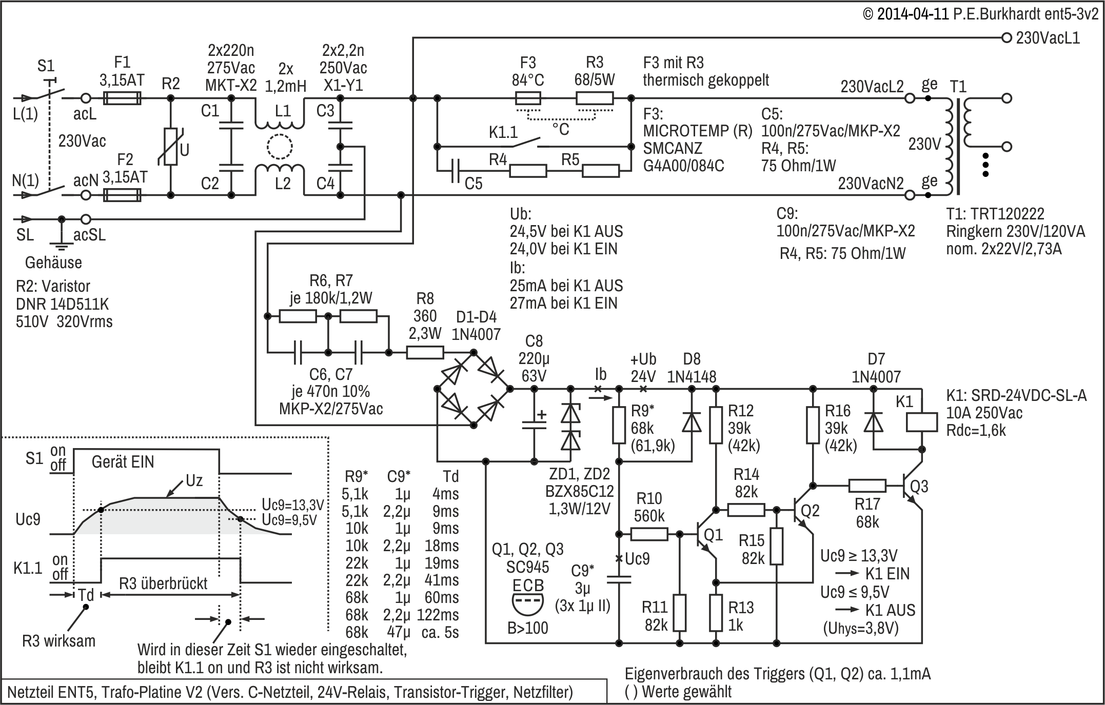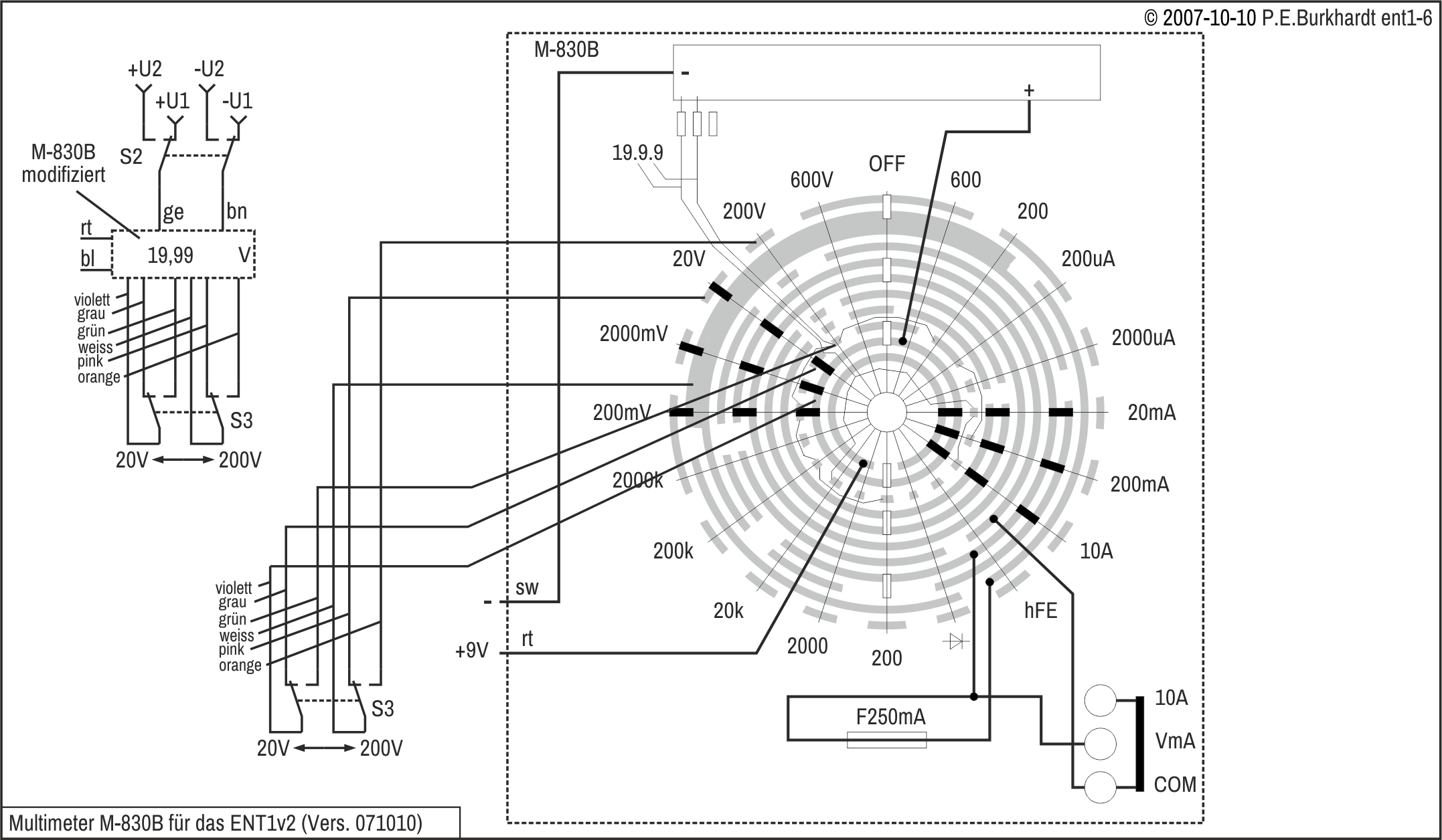 Unterlagen zum industriell gefertigten ENT1 waren nicht mehr vorhanden. Deshalb wurde die Schaltung neu aufgenommen (26.09.2007).