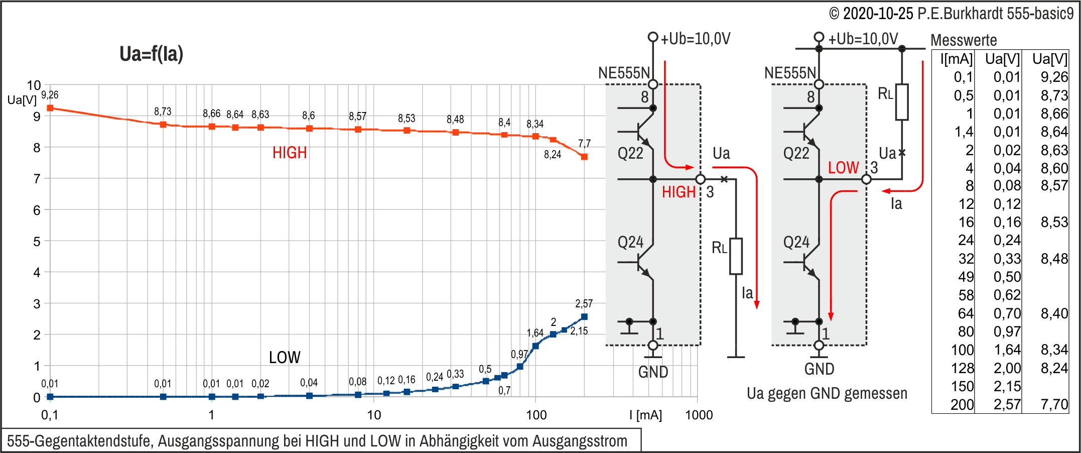 Das Bild zeigt den Stromfluss links im LOW-, rechts im HIGH-Zustand. In beiden Fällen dürfen 200 mA (maximal sogar 225 mA) fließen.