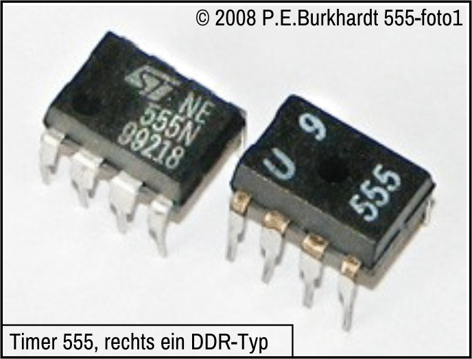 Diese Chip-Variante von STMicroelectronics ist am weitesten verbreitet. Wenn nicht anders vermerkt, wird in den 555-Anwendungen der hier beschriebene NE555 eingesetzt.