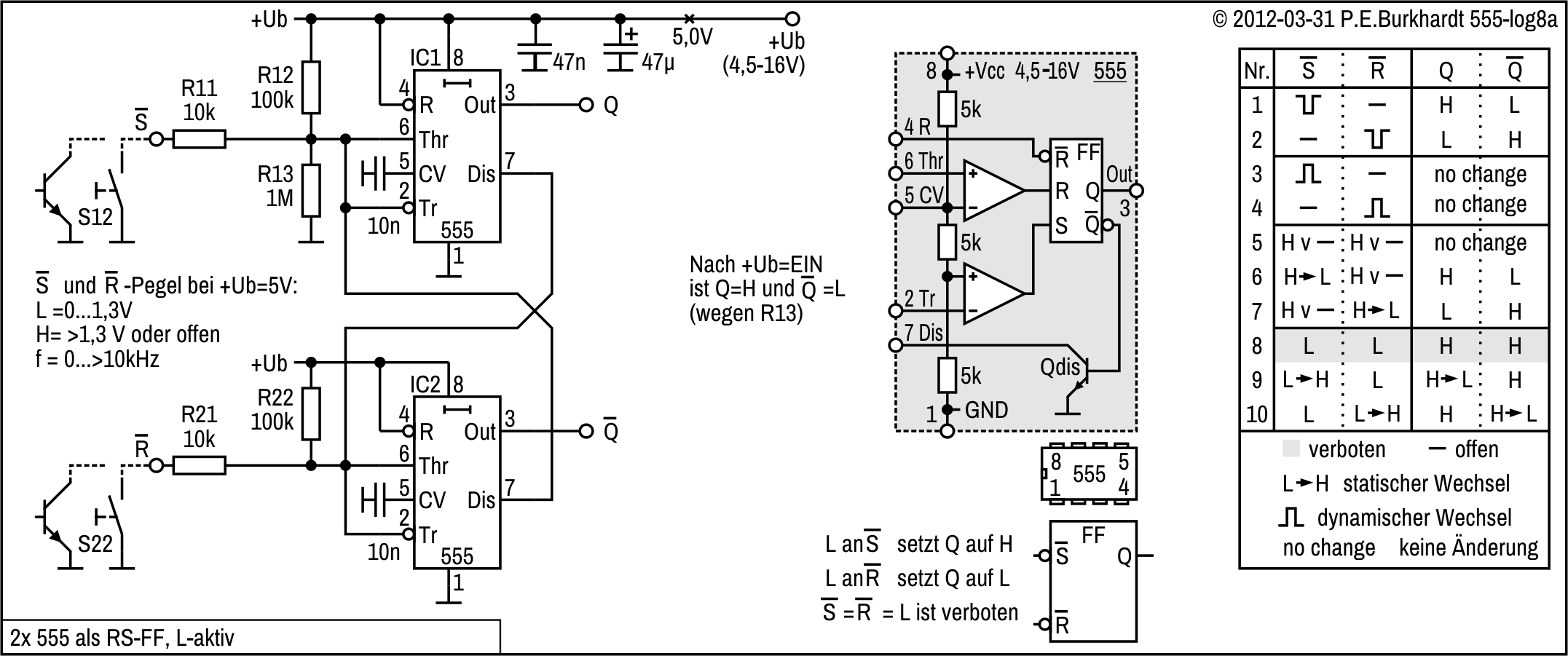 555 als RS-FF, L-akiv über Pin2/4