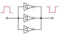 As for the operation of the oscillator which used the inverter, refer to "Square wave oscillator".