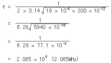The resonant frequency is calculated in . When calculating as L = 18 µH, C = 330 pF, the resonant frequency becomes about 2 MHz.