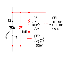 condition.The operation since then is same as being above-mentioned. ![]() The bidirectional triode thyristor makes the noise occur at the time of ON/OFF. When the noise has an influence on the equipment to use for the load, it is possible to reduce when putting the filter. Also, when using the equipment which used the coil(Motor and so on) for the load, the high voltage sometimes occurs there. This circuit can protect the bidirectional triode thyristor from the high voltage, too. TNR is a kind of the semiconductor, being called the varistor. When the voltage which is higher than the varistor voltage is applied, the resistance value of the varistor falls, and makes bypass the voltage and protects the bidirectional triode thyristor. In case of AC 100V, the one that the varistor voltage is about 270 V is used. To connect the varistor with the load in parallel, too, is effective to protect the bidirectional triode thyristor from the high voltage from the load. The varistor sometimes connects when it degrades. Because it is, when connecting the varistor with the load in parallel, the fuse must be put in the AC circuit. | |||||||||||||