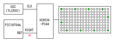 Ornamental LEDs are put around the LEDs for displaying message. The 5 binary counter which is constructed in XC9536-PC44 is used. The direction of lighting-up movement where the LED lights up is shifted by the clock signal from the OSC. The direction is changed by the level of RB7 of PIC. When RIGHT is an L level, it is counterclockwise. CPLD of the XC9500 series can be applied 24-mA current for one pin. So, two LEDs can be controlled with one pin. The number of the LEDs is 50. So, it is used five sets of output of the 5 binary counter. The animation on the left is equivalent when using a clock signal with about 200-millisecond period. ![]() This oscillator generates clock pulse for edge LEDs. The shifting speed can be adjusted with the variable resistor.