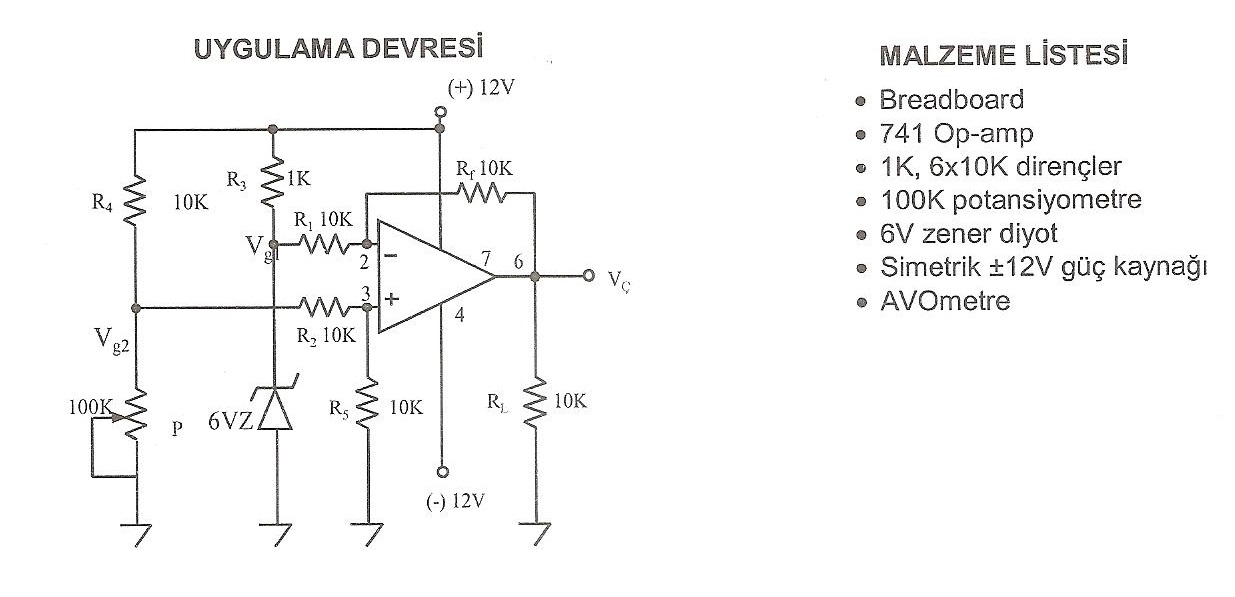 Uygulama devresinde VQ1 e zener diyot üzerinden sabit 6V giriş gerilimi uygulanmıştır. VQ2 ise