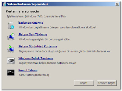Sistem Görüntüsü Kurtarma seçeneği ile daha önceden oluşturduğunuz sistem görüntüsünü geri yükleyebilirsiniz. Bu seçenek ile daha önceden olşuturduğunuz sistem görüntüsü ile bilgisayarınızın diskindeki tüm dosyaları geri yükleyebilirsiniz.​
