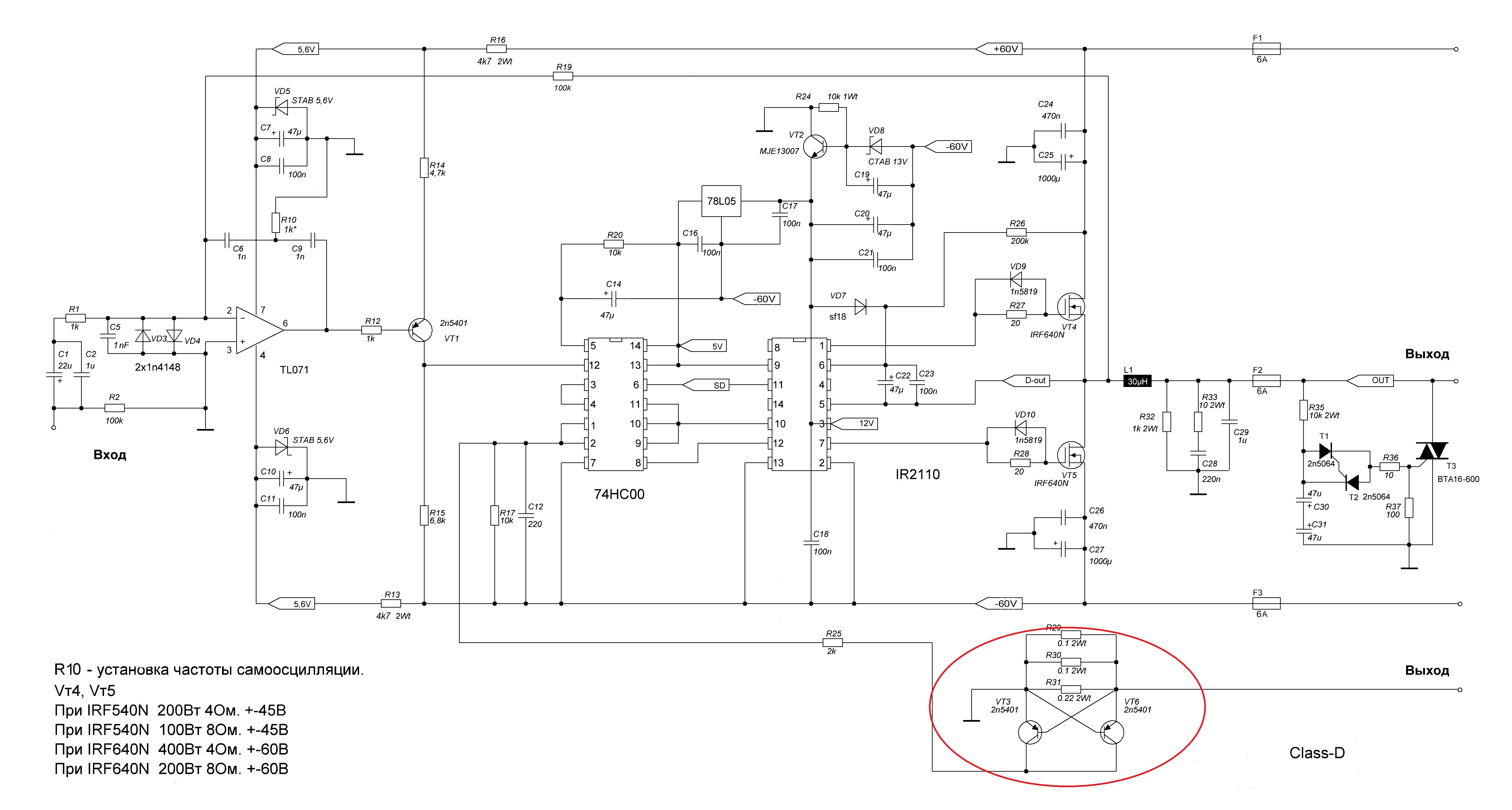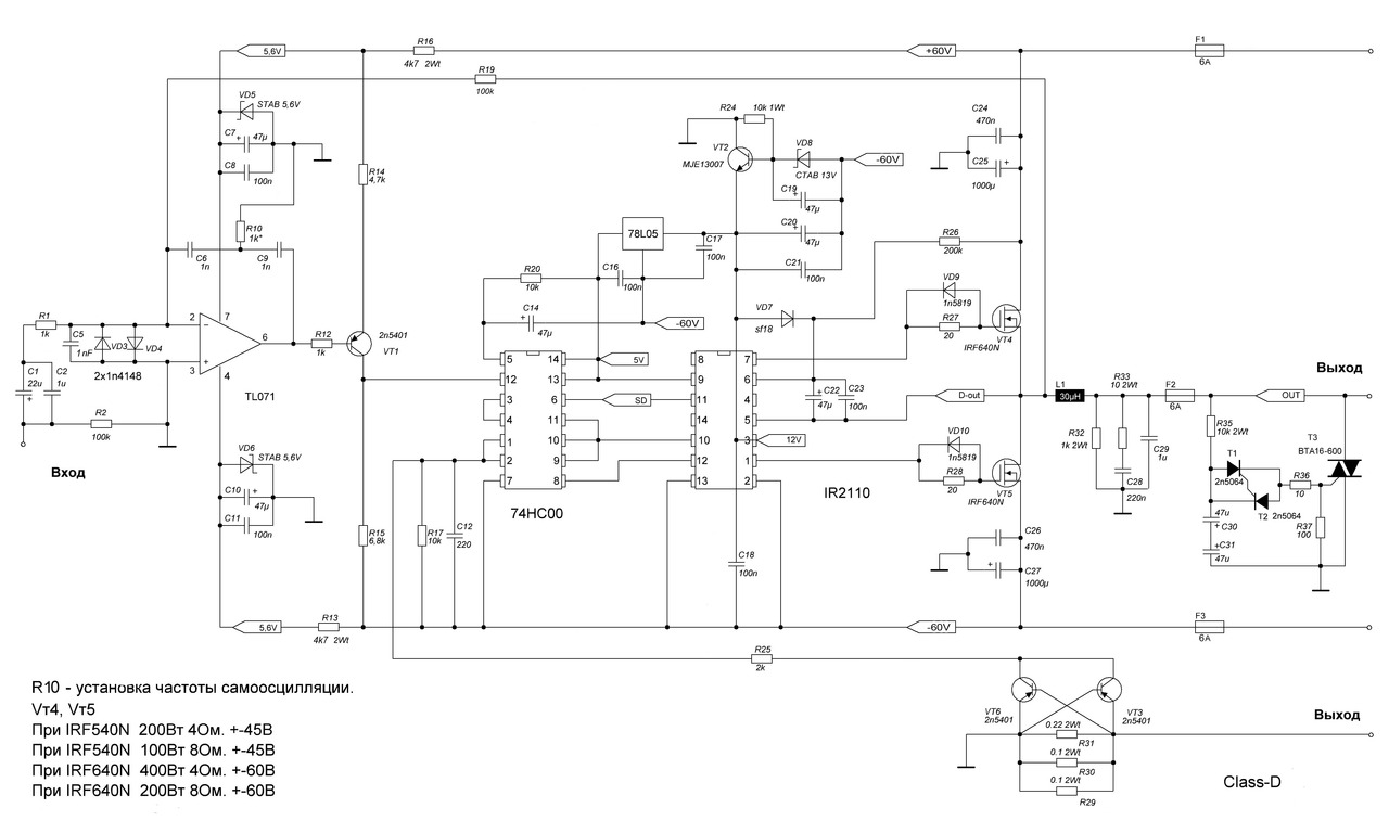 самосцил простой класс-д с транзисторным �...