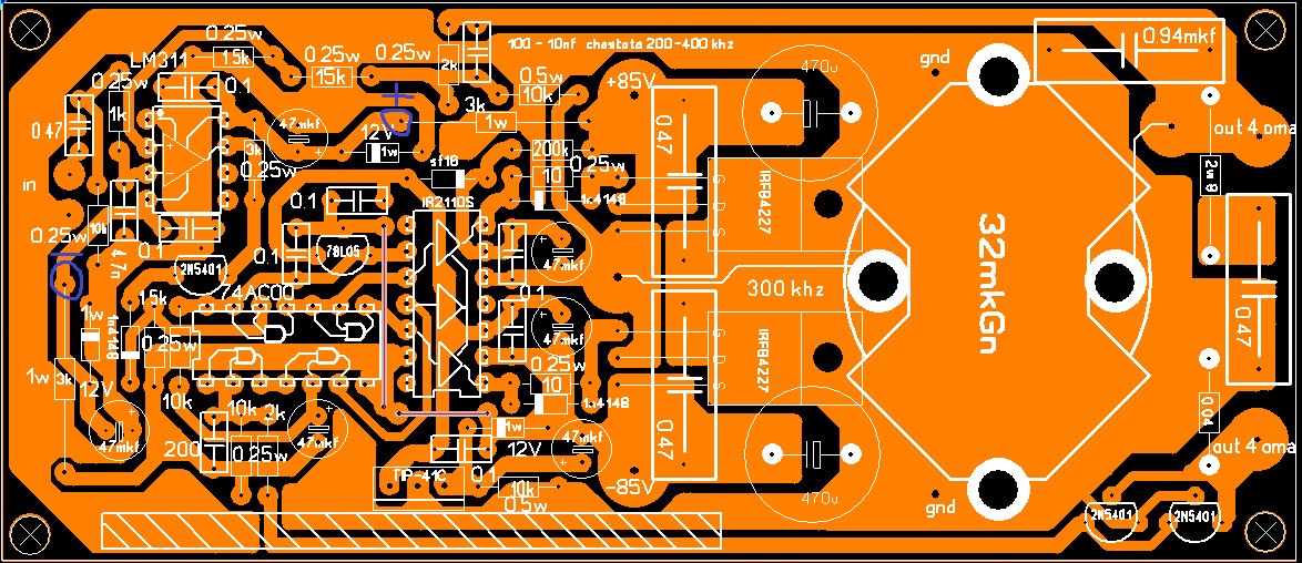 Печатка NEW PALNIK 74AC00+IR2110 class-d+защита.rar