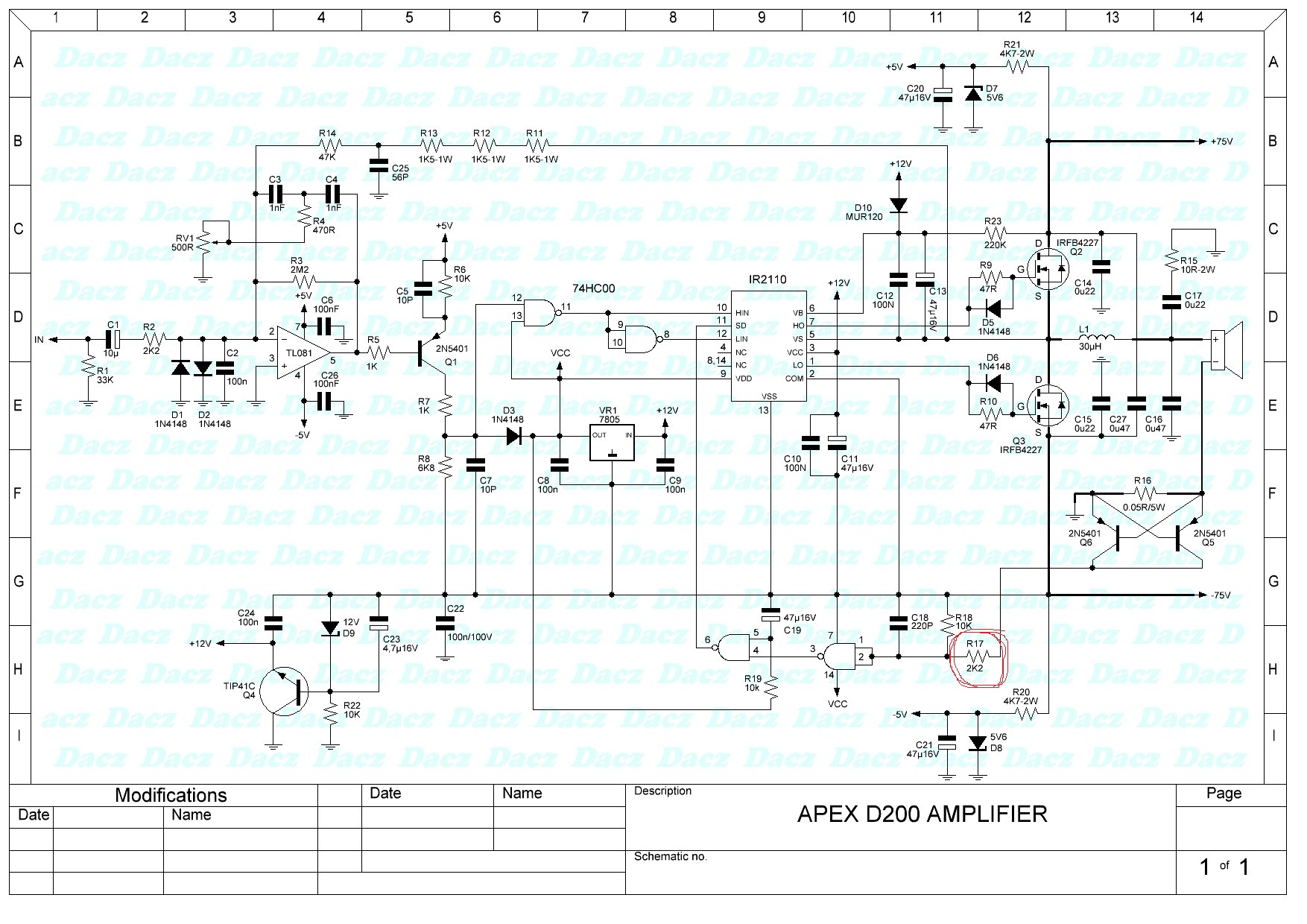 900W Amplifier Class D Tl071 IR2110 CD4049 IC 70 0 70volt dc