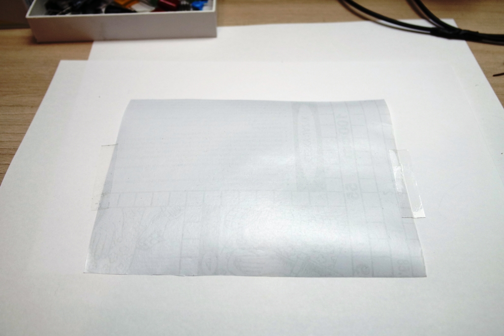 Подложка от самоклейки с помощью скотчка крепится на лист бумаги А4: