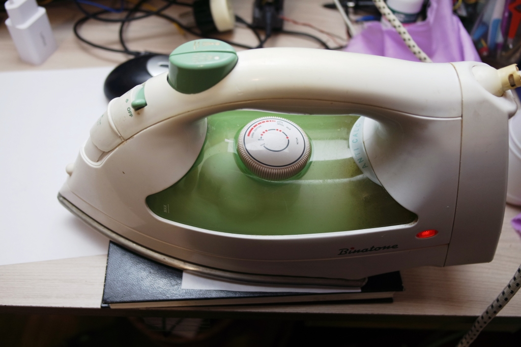 Ставим сверху утюг, прижимаем сильно, не двигаем горячий утюг в течении 1 минуты: