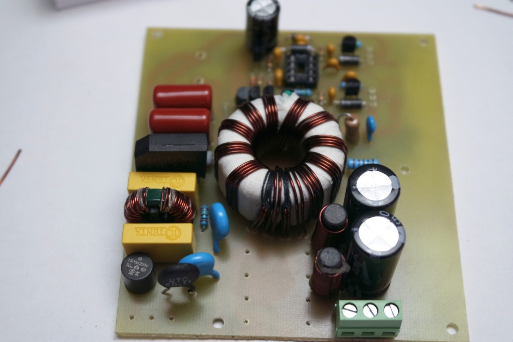 ИИП работает хорошо, софтстарт, триггерная защита от КЗ. Микры китайские с али, но работают нормально, частота 47кГц. IR2153 Deadtime бы поменьше, было бы круто, напряжение под нагрузкой падает на 15%.