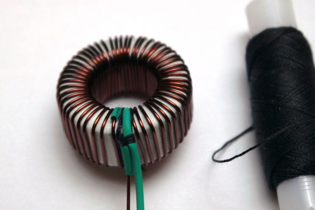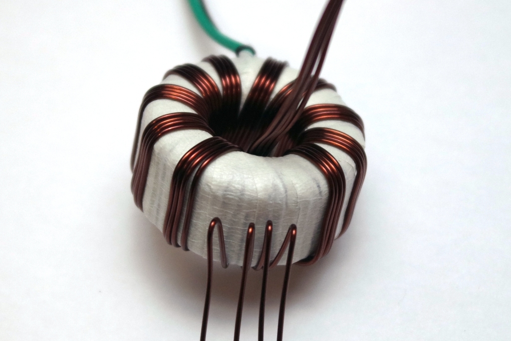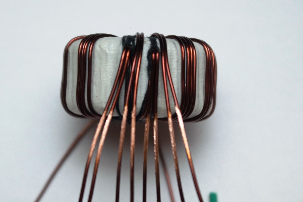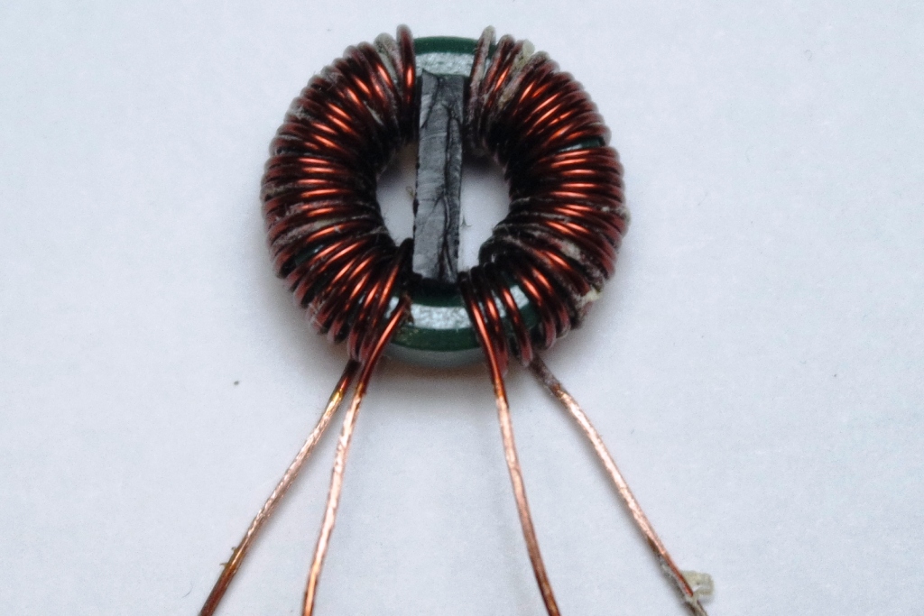Синфазный дроссель, установлена перегодка для разделения обмоток: