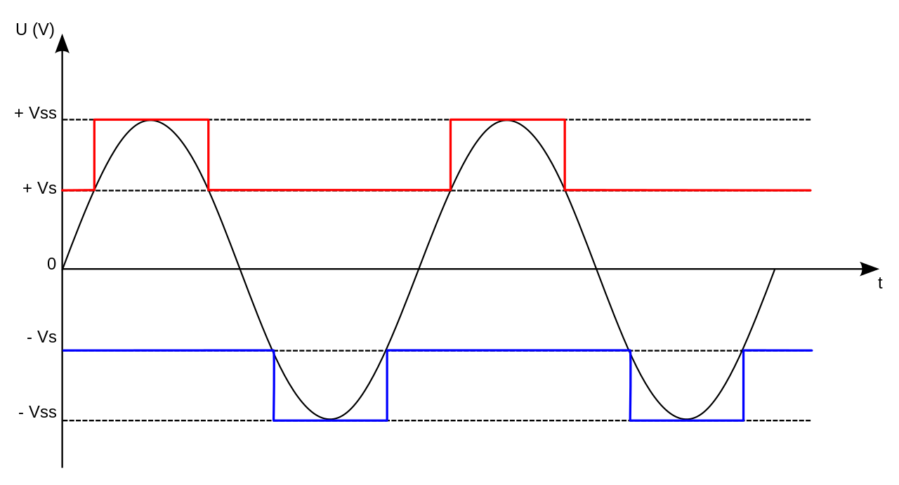 Sin embargo la señal no es suficiente para excitar el mosfet, por lo que pasa a una siguiente etapa de amplificación en tensión QS3, para pasar a una última etapa de amplificación en corriente conocida como tótem pole que garantiza que el mosfet QS11 se active adecuadamente. El LED mostrado en el diagrama es solo para mostrar cuando el conmutador está activado. En cuanto al diodo DS5 separa las tensiones de los rieles, ya que si se unen podría haber un corto circuito.