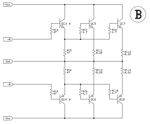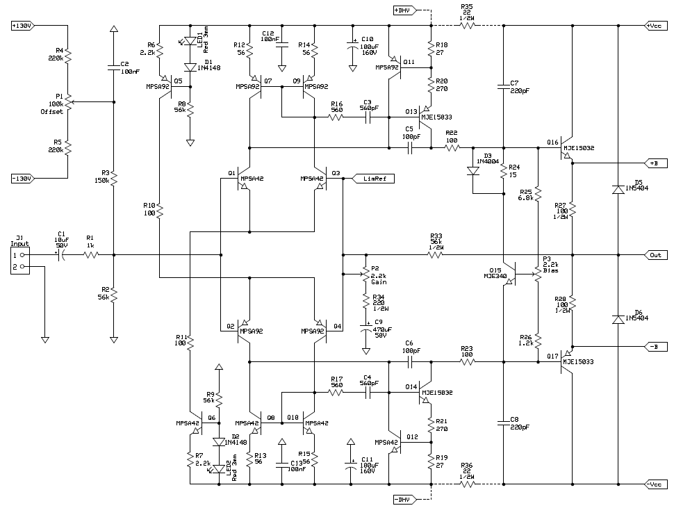 Sin duda uno de los mejores diseños que he visto y probado, hace como 15 años hize un amplificador similar y doy fé que es muuuy estable con diferentes tensiones.