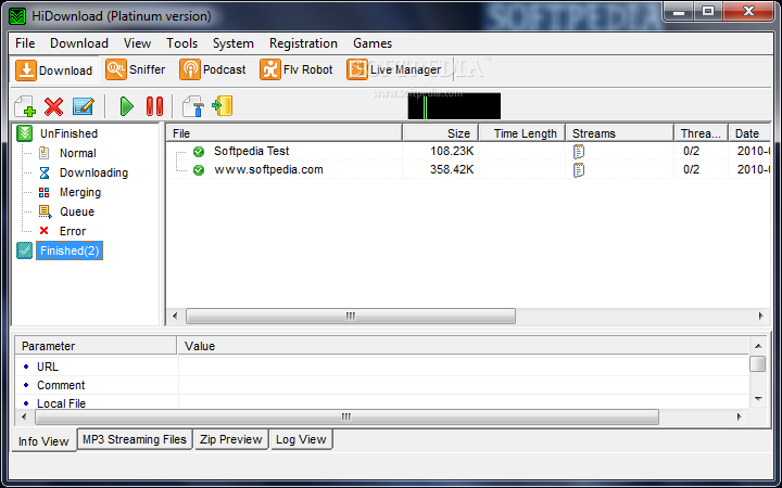 HiDownload, internet üzerinden dosya indirme işlemi yapabileceğiniz ve dosya indirme işlemlerinizi yüksek hızda yapabilmenizi sağlayan dosya indirme yöneticisidir. Çok büyük boyuttaki dosyaları dahi çok kısa zaman içerisinde indirebilmenizi ve çeşitli müzik, video dosyalarını kolayca yükleyebilmenizi sağlar.